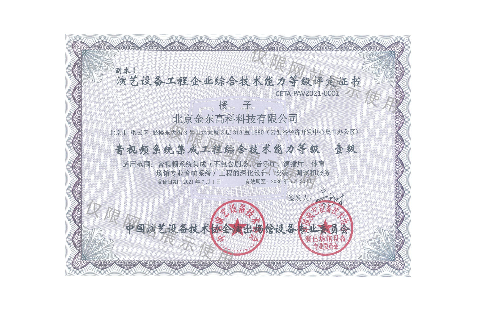Performing arts equipment Comprehensive-Level 1