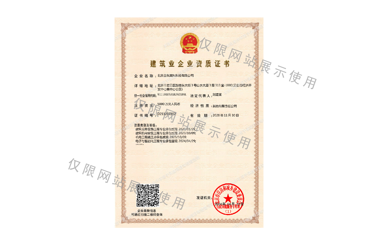 Level 1 professional contracting qualification of Electronic and Intelligent Engineering